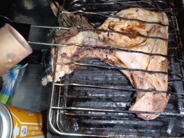 ブリのカマや兜を焼く場合に便利なものにカセットバーナーがたいへん役にたちます。 皮の面を魚焼き器でとろ火で焼きながら上や横の部分をバーナーで炙れば素早く焼き物が完成します。 ただ便利なだけに危険性も高いので、十分な注意が必要です。 出来れば消火器を備えて使ったほうがよいでしょう。