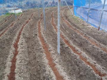 農作業は昨日あつめた枯葉で肥料作り開始です。 下は元肥を施した畑です。