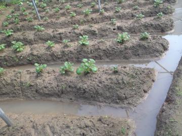 朝はこんな状態で、水浸しで、かわいそうなジャガイモたちです。