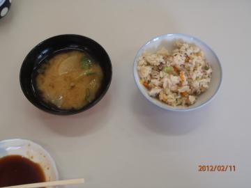 一見、普通の味噌汁と炊き込みご飯ですが、なかにはブリがたんまりと入っています。 こちらでは普通これと下のブリの刺身とアラ煮がつきます。