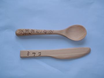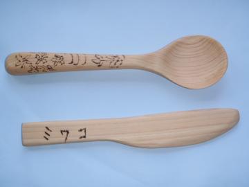 尾鷲ヒノキを使って箸を作られ、コンテストでみごと優秀賞を受賞された東みわ子さんは箸のほかに、その尾鷲ヒノキを使ったスプーンやナイフも制作され、箸におとらずステキな出来ばえなので、あらためて紹介させていただきます。