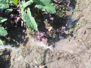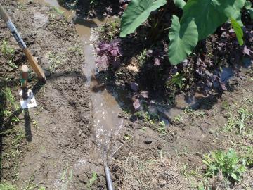 梅雨の間は水の心配がありませんでしたが、夏場は水の手当が必要です。 こちらでは飲料水レベルの山の湧水を作物に与えることができます。