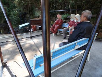 収穫後に完成したばかりの「あずまや」でくつろぐ「ひまわりの会」の美人婦人会の方々ですが、浮き橋の強度が心配です。 事故がなく良かったです。