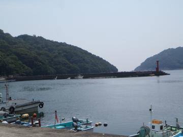 午前11時ごろの早田の港のようすです。 湿度が高いので蒸し風呂状態の暑さです。