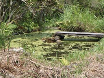 猛暑のなかメダカ池の水位は依然と低いままです。