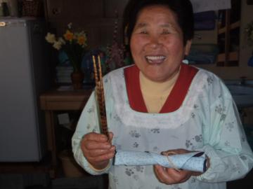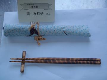 実さいに拝見させていただき、手にとつてみますと、その軽さと持ちやすさに驚かされました。 そして、焼き模様と箸置きにも名前も焼かれ、ほんとうに丁寧につくられておられ、 そしてまた、けいたい用の箸袋においても、木の名札つきで、たいへん綺麗なものでした。