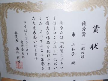 早田の 東 みわ子さんがこのコンテストでみごと優秀賞をとられました。