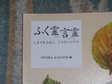 第一回の「ふくふくの会」の物語と、その会の10年にわたり、人生の先輩たちの発する珠玉の言葉をつむいだ本の「ふく霊 言霊」(ふくだま ことだま)のお年よりの言葉は私の心に深くしみいるものでありました。 特に98歳の元用務員さんの言葉は、私も彼の年齢まで生きることができたなら、是非とも使いたい言葉です、もう少し美しい衣をまとわせ。
