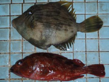 この魚は、上は前に紹介しましたカワハギで、下はカサゴ(がし、がしら)とよばれる魚ですが両方とも見てくれは悪いですが、その味は素晴らしいです。 カワハギは前に紹介したばかりで、味は保証済です。
