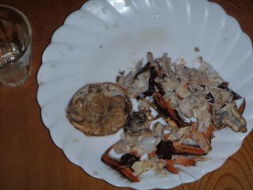 さすが川蟹、カニの味が濃厚で、蟹の香が立ち、久々で獲りたてなので、あっという間に上の状態になってしまいまいた。 中華料理で有名な上海ガニや松葉ガニの季節でもありますが、上海ガニ、越前ガニに勝るとも劣らない味でした。