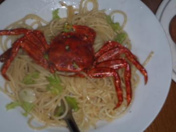 油で揚げパスタに合わせると、香ばしい蟹の香と殻ごといただけます。