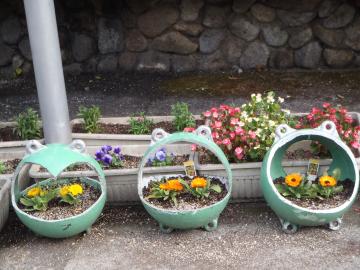 早田のカエルたちもクリスマスと新春を迎えるため新しい花に植え替え完了です。